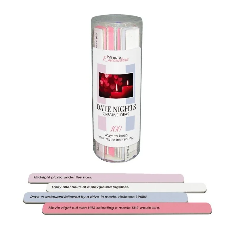 Whenever you need a date night idea, select an idea stick. Read both sides of the stick with your significant other and choose the one you wish to carry out.