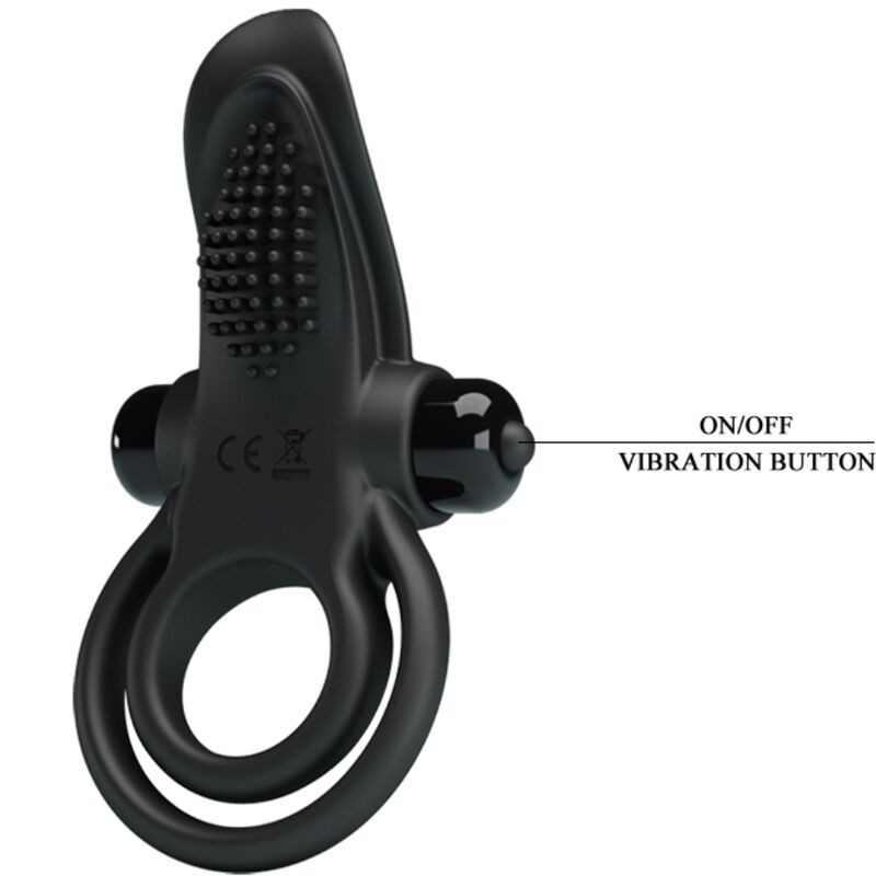 PRETTY LOVE - DOUBLE VIBRATING RING + CLITORIS STIMULATOR 10 VIBRATIONS BLACK