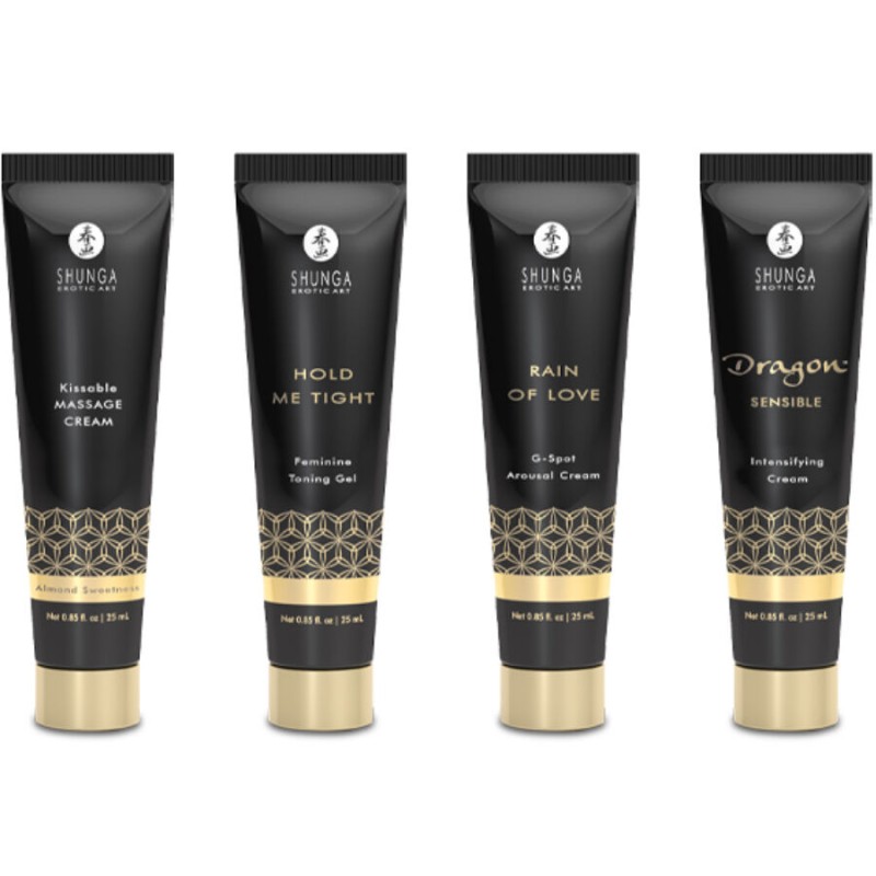 25 Days of Pleasure: Each box will reveal a treasure from our range, carefully selected to awaken your senses and enrich your intimate moments. From delicate massage oils to captivating lubricants, accessories, and bold creations, each product embodies the essence of SHUNGA: a perfect blend of luxury, sensuality, and passion. Let the days carry you away and each surprise bring you a little closer to the pinnacle of desire. Let‘s celebrate together these 25 years of pleasure and love, in intimacy and complicity. Because love is an art…